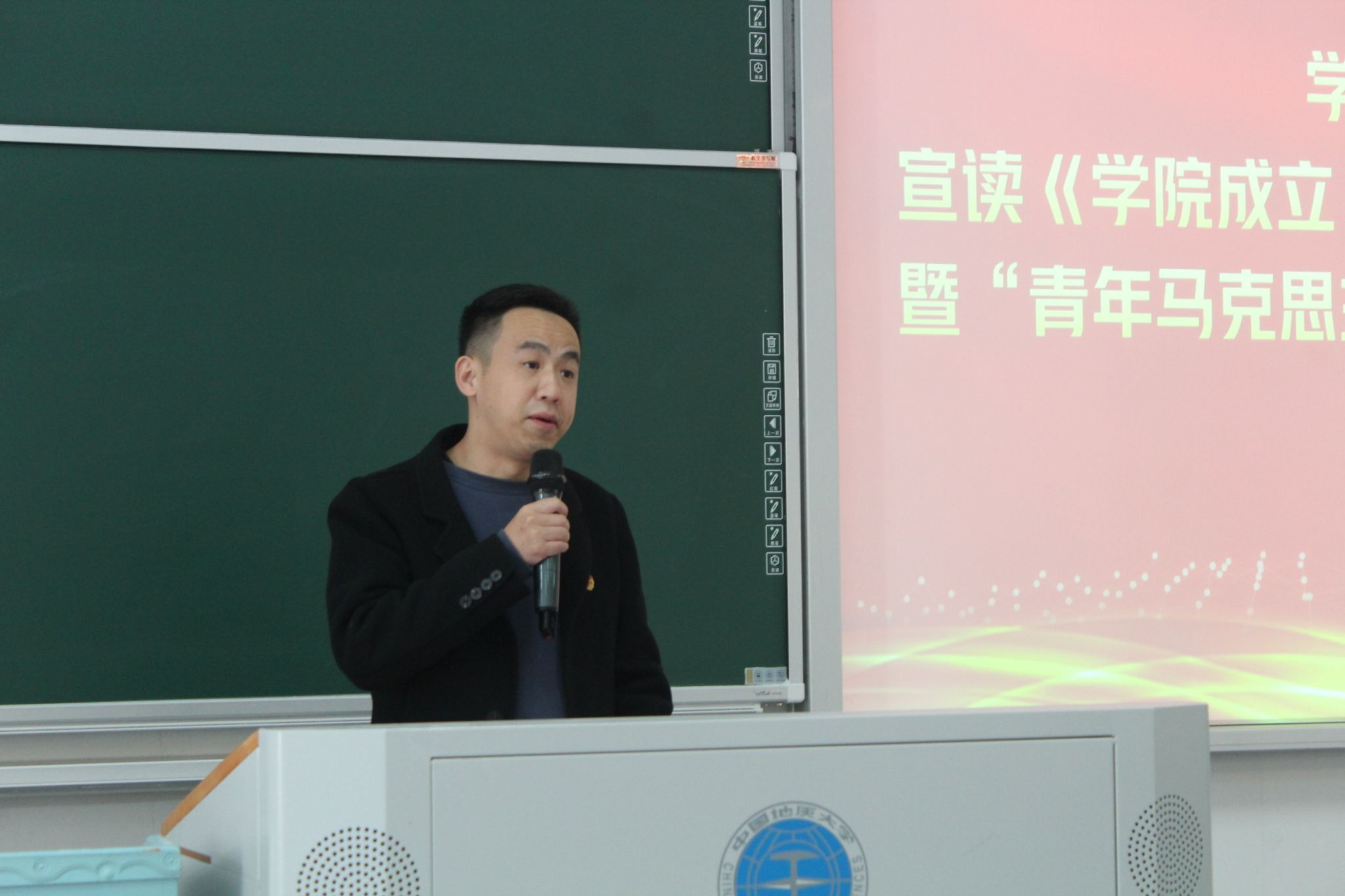 “测地明理”宣讲团代表骆阳介绍宣讲团发展概况。宣讲团自成立以来,积极贯彻党的二十大精神,通过集体备课、专题研讨、巡回宣讲等活动,形成了朋辈教育和浸润教育的思政教育模式,足迹遍布8省40余地,累计推出专题视频三十余部,开展红色理论宣讲百余场,覆盖听众3万余人次,被多家权威媒体报道,展现了青年力量在新时代征程中的积极作用,为学习贯彻宣传党的创新理论贡献了青年的力量。