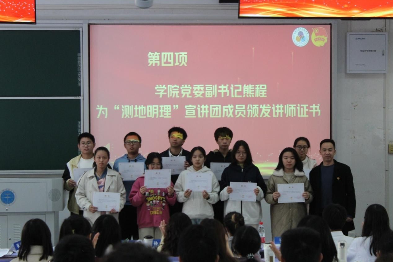公司党委副书记熊程为“测地明理”宣讲团成员颁发讲师证书。