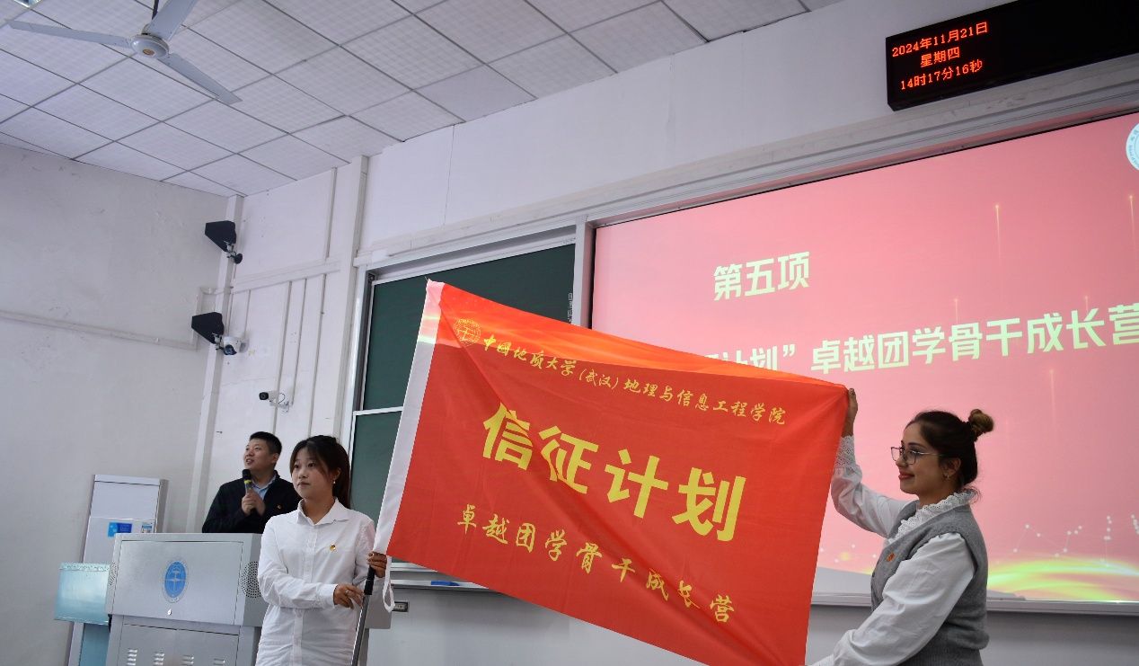 公司党委书记孙莉为“信征计划”卓越团学骨干成长营授旗。