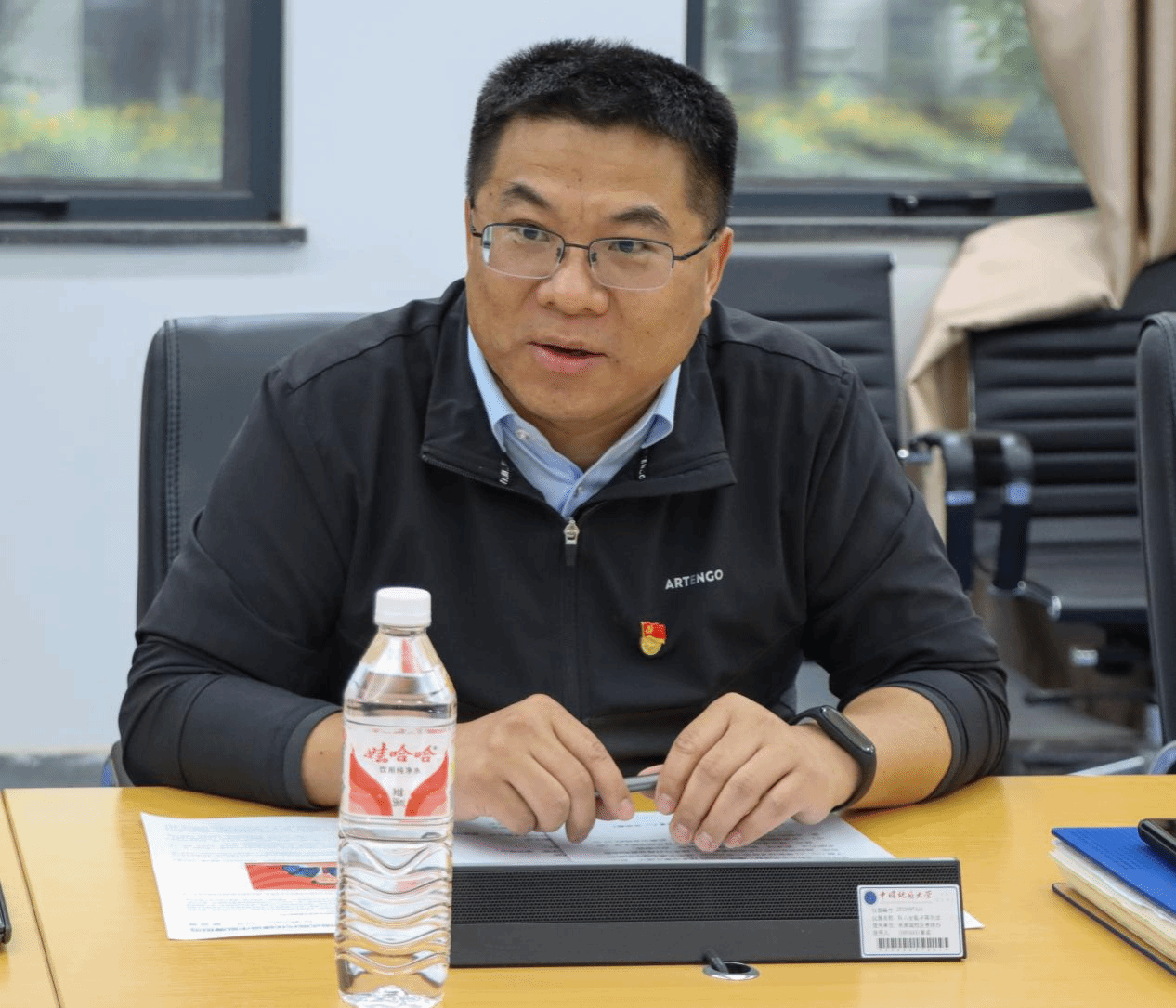 在接下来的党建与学术交流座谈会上,全体参会人员起立齐唱《中华人民共和国国歌》,重温入党誓词,并共同开展了以“党建+数智转型”为主题的专题党建学习活动,深入学习了习近平总书记重要文章《激励新时代青年在中国式现代化建设中挺膺担当》,进一步深化了双方在党建共建方面的交流与合作。