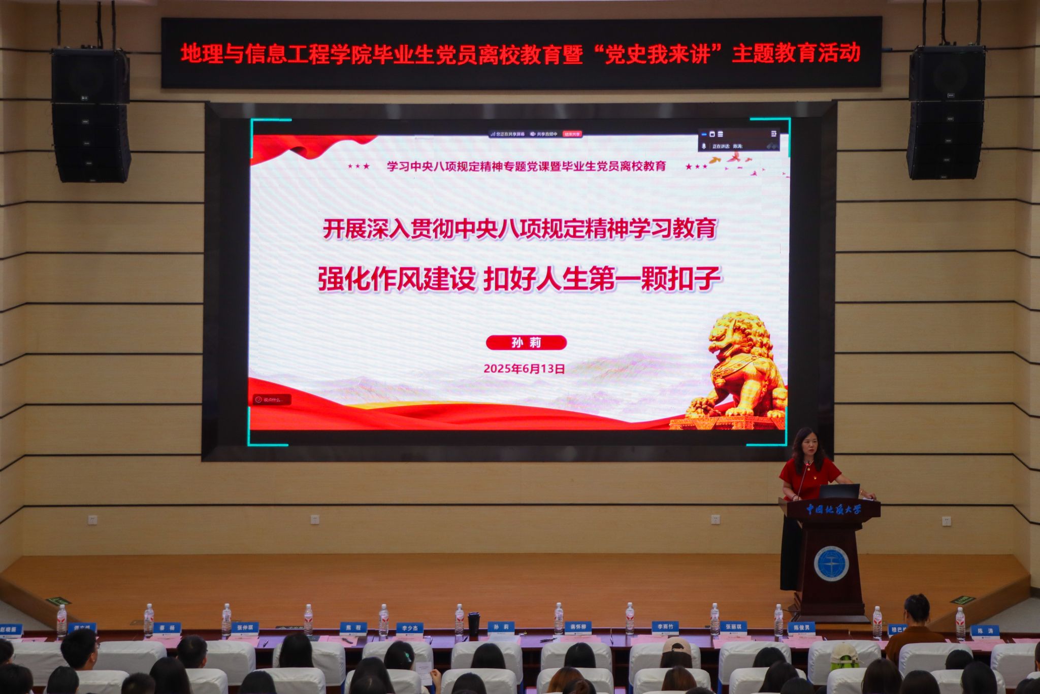 2025年6月13日上午,公司在未来城校区召开2025年毕业生党员离校教育暨“党史我来讲”主题教育宣讲活动。公司党委书记孙莉讲授深入贯彻中央八项规定精神学习教育专题党课,4位教师党员和6位员工党员同台宣传党的红色历史。公司党委组织部正处级组织员蒋怀柳、党委员工工作部副部长李少杰、未来城校区管理办公室副主任李雨竹,未来城各单位辅导员张丽琪、陈俊男、蔡杨、谭文博、张仲琪出席活动。公司党委副书记熊程、公司全体辅导员和全体员工党员参加活动。