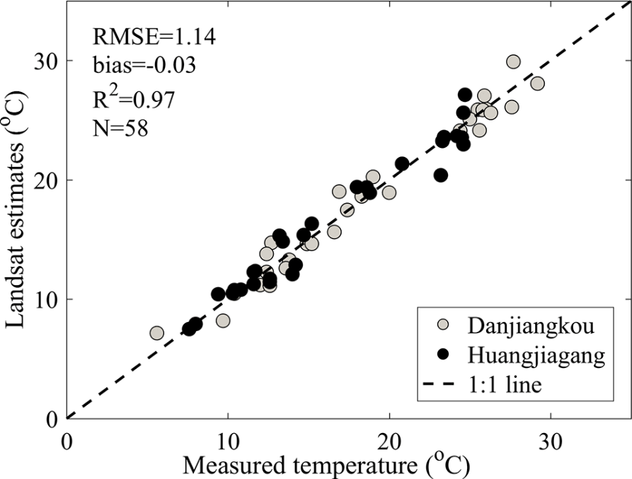 图6. Landsat反演水温与实测水温对比验证结果
