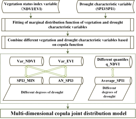 图2. 基于copula函数的植被-干旱多维响应模型流程图