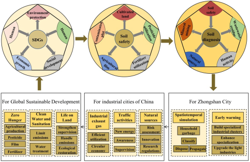 观点3:基于美丽中国之“土壤安全”指标,提出了针对中山市,中国工业城市以及全球可持续可持续发展的农用地土壤重金属污染整治思路。应至少包括5个方面内容:控制工业污染源、减少自然来源、规范人类活动和监管矿产开发与冶炼。