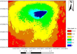 根据精度分析结果,利用建立好的ELM网络模型和GA-ELM网络模型对研究区海域进行水深反演,结果分别如图2、3所示。