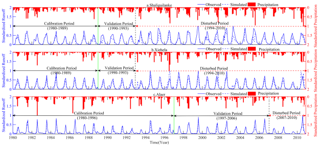 研究发现:(1) 虽然阿克苏河流域上游的非同步突变降水量和径流量均有所增加,最大增幅分别为3.3mm和1.2mm/秒,但下游的降水和径流量的同步突变表明人类活动只影响了阿拉尔水文站的径流量; (2) 模型验证结果显示 CLM-DTGVM可以很好地应用于具有复杂土地利用变化背景下的阿克苏河流域历史和未来的径流模拟;(3) 干旱发展、最大强度和干旱终止的季节主要发生在冬季,其次是春季、夏季和秋季,而人类活动对阿克苏河流域的干旱特征有明显的影响。