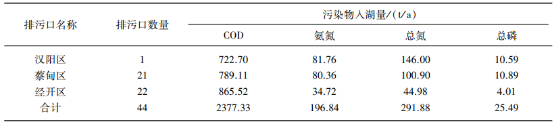 表3后官湖流域排口入湖污染量