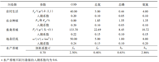 Tab.2 Coefficients of different pollution sources into lake
