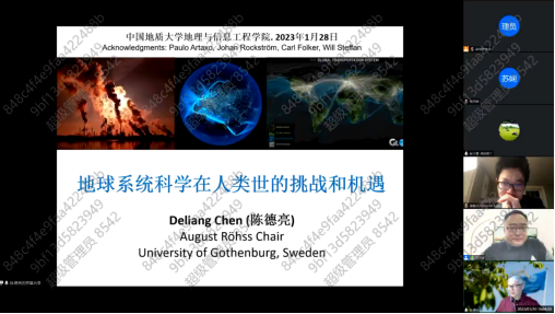 2023年1月30日,应王伦澈教授邀请,瑞典哥德堡大学陈德亮院士做客bv伟德中国官方网站(武汉)名家论坛(第2023-02期),以线上形式作题为“地球系统科学在人类世的挑战和机遇”的学术报告,受到广大师生的热烈欢迎。报告由副董事长王力哲教授主持,线上与会人员900余人。