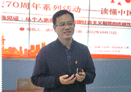 10月21日,为庆祝党的二十大顺利召开,迎接公司七十周年华诞,公司在未来城校区公教一113举办“读懂中国”暨迎校庆70周年系列活动。本次讲座邀请了公司原人文与管理公司退休教授盛宏模老师,讲座以“个人经历——历史责任”为主题。参与本次活动的有公司党委副书记武彦斌、环境遥感团队党支部、全球变化团队党支部和空间规划团队党支部党员和入党积极分子。讲座由空间规划团队党支部宣传委员杨立言主持。