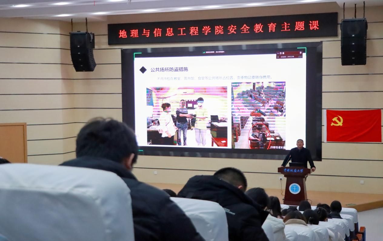 随后,张献文主任从四个关键角度——“防骗”、“治安”、“防火”、“网络安全形势”,对安全教育进行专题授课。